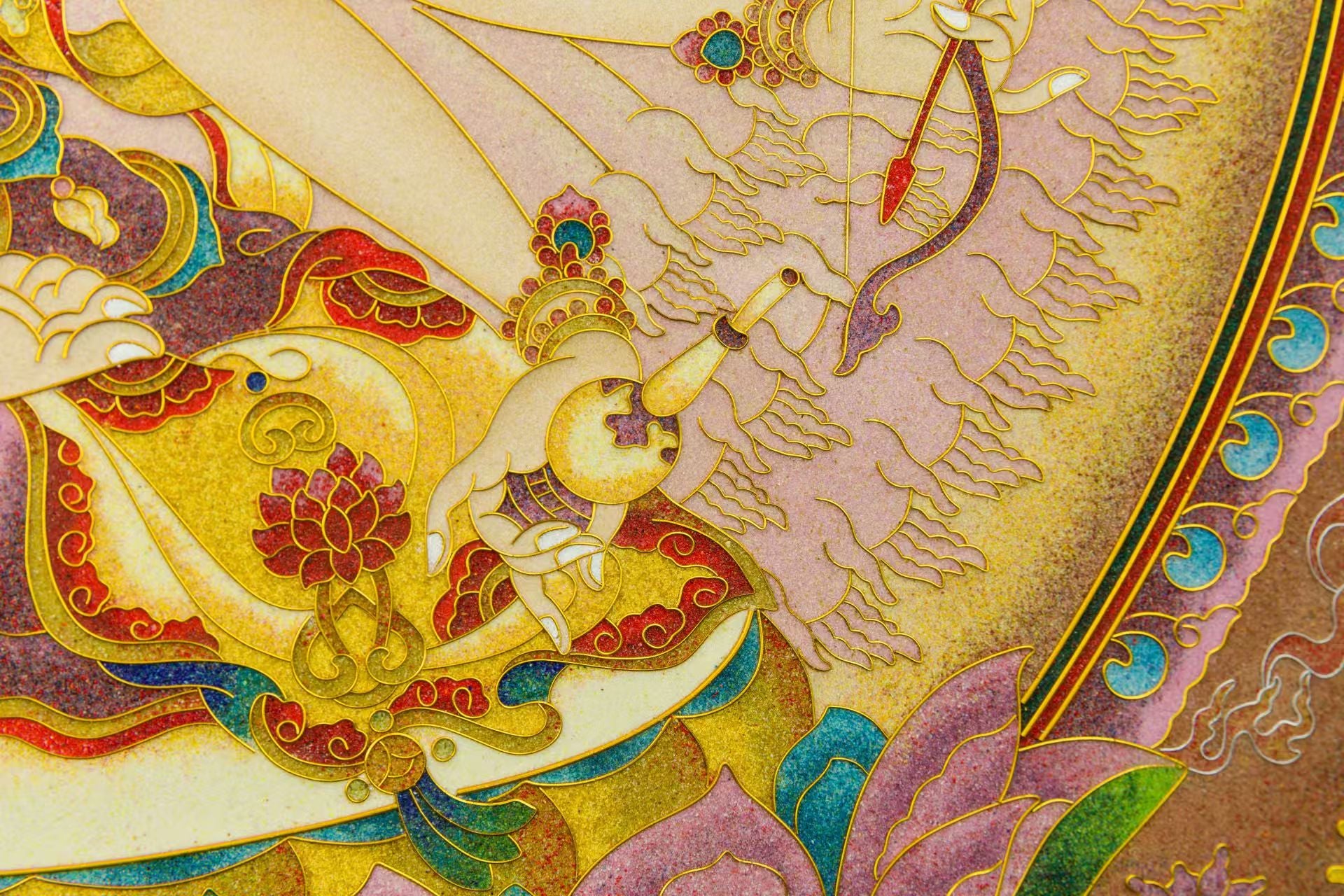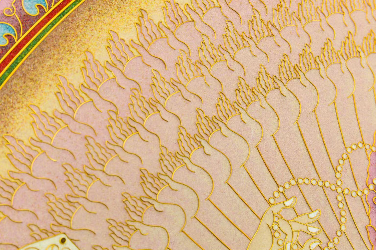 Ekādaśamukha (Eleven-Faced) Avalokiteśvara Bodhisattva is depicted with various forms, including those with four arms, eight arms, or even a thousand arms, similar to the Thousand Hands and Thousand Eyes form. The Bodhisattva's physical forms vary slightly. The Eleven-Faced, Thousand-Hand Guanyin, for instance, typically has eight arms.